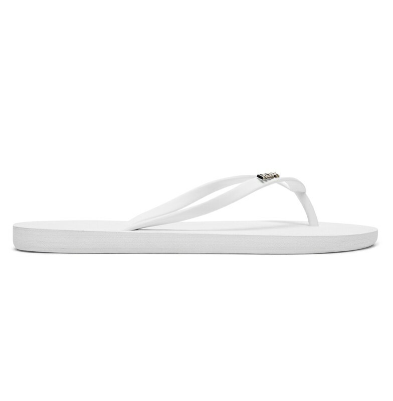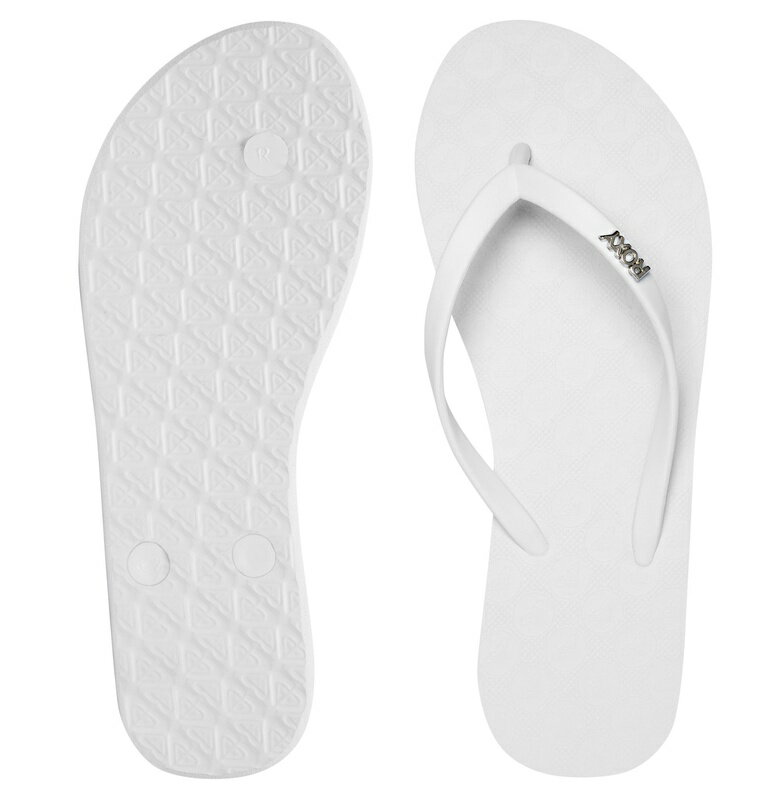 ベルトについたメタルのロゴが高級感を漂わせ、ソールに型押しされたROXYの総柄のロゴでさりげなくブランドをアピール。