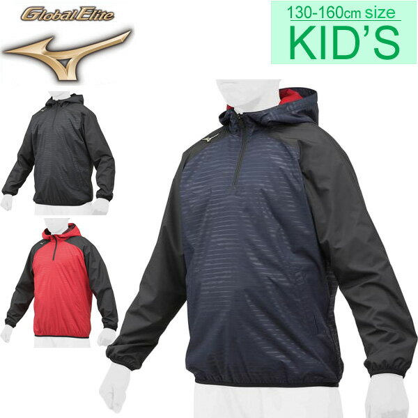ミズノ mizuno グローバルエリート ウインドブレーカー 長袖 キッズ ジュニア ウインドパーカ ハーフZIP/スポーツウェア 野球 ベースボール 子供服 130-160cm プルオーバー ウインドブレイカー/12JE8V51